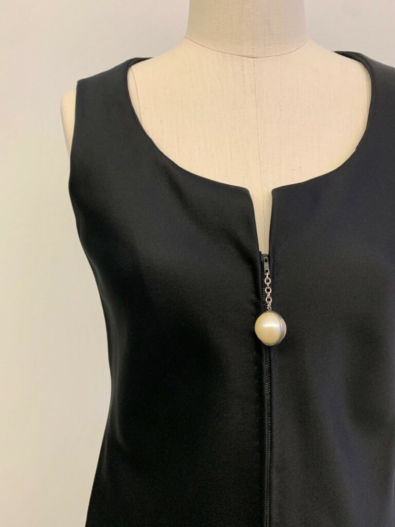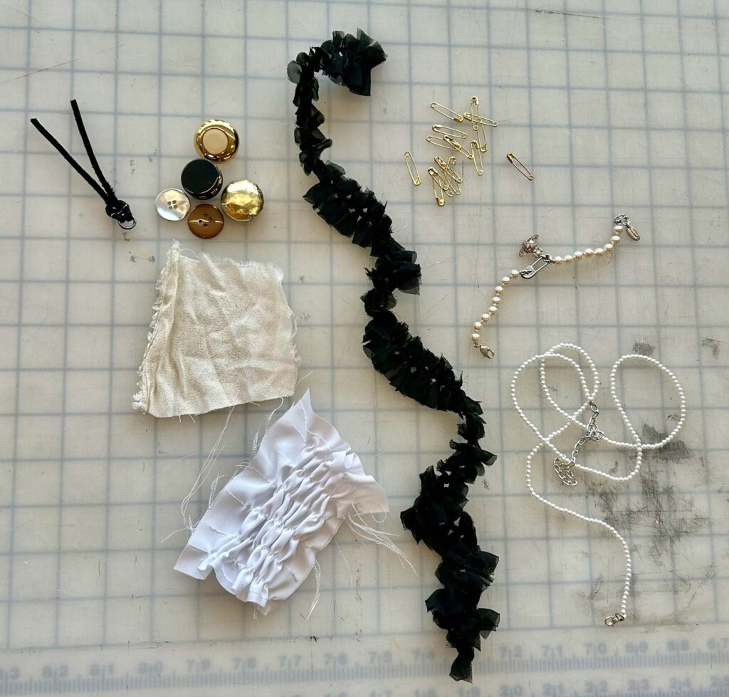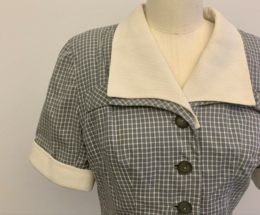 Drawing from an array of pieces within Cornell Fashion and Textile Collection (CF+TC), our design project pays homage to the timeless elegance of a feminine workwear set with a contemporary edge. Inspired by feminine details on a women’s suit, the textures of a pleated dress, iridescent oyster buttons, and the innovative practicality of a Margiela dress with unique pockets that offer both functionality and design, our collaborative project seamlessly merges these influences into a cohesive contemporary ensemble.