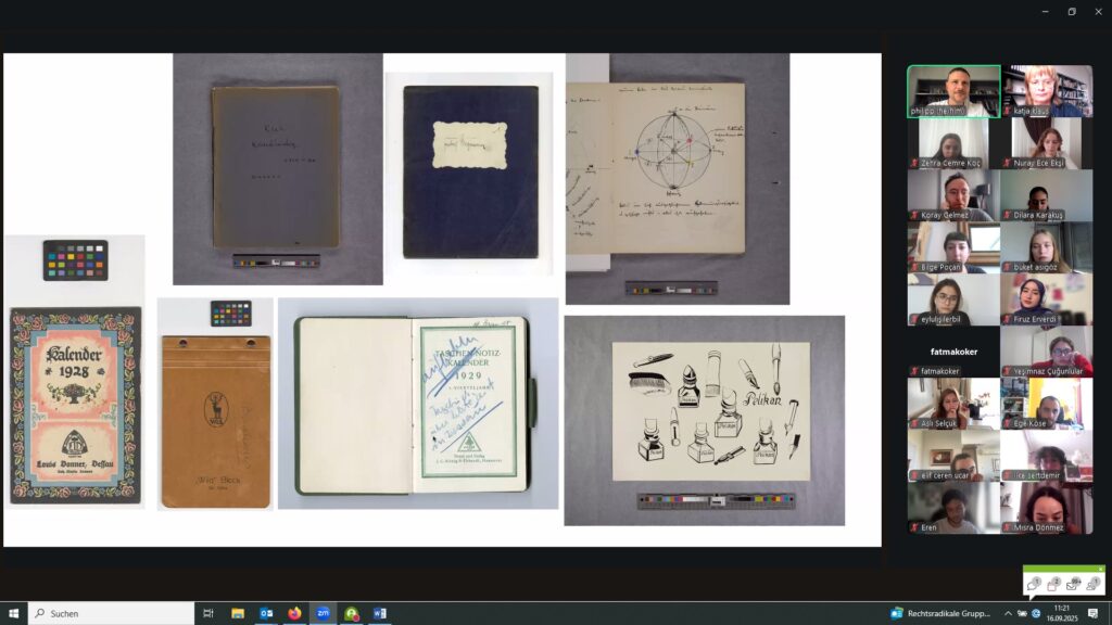 Editorial note: Participants in the digital Bauhaus Open Studio are currently reflecting on what it means to be a design student in Türkiye today. In the studio, students are tasked to design their own “design student bag.” These bags embody their routines, tools, and needs and serve both as a mobile studio and a reflective diary. The first online session focused on material exercises and special documents from the historical collection.