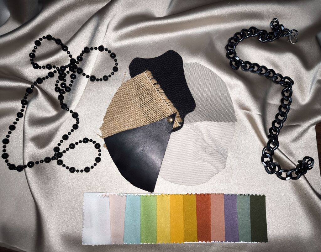 “Touch is frequently the first way that people connect with a bag. Thus, characteristics like surface feel, hardness, flexibility, roughness, or softness have a direct impact on the design’s personality. Three primary categories may be used to evaluate the materials that are on the board. Warm and organic textures are represented by the first group. Cork, felt-like white surfaces, and thread features, for example, enhance the sense of sustainability and naturalness. This part reinforces the bag’s reputation as being accessible and eco-friendly. The textures in the second group inspire refinement and luxury. Velvety texture, satin, lace, and shiny translucent cloth give the consumer a feeling of elegance and quality. These components turn the bag into a fashionable accessory in addition to a useful item. Sporty and practical materials form the third category. Rigid plastic accents, braided straps, and mesh fabric emphasize strength and movement. This guarantees that the design offers comfort and durability for daily usage. These three categories have perceptual, tactile, and functional similarities while being classified differently. As a result, rather than existing as distinct categories, they are positioned along a path where their similarities and differences occasionally converge to form a multifaceted design story.”