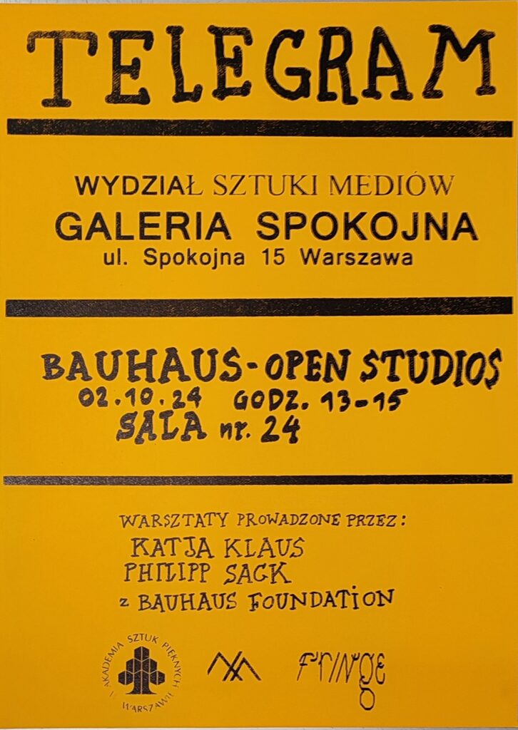 This work has been created in the context of the Bauhaus Open Studios programme with students from the Intermedia Communication Studio of the Academy of Fine Arts in Warsaw (studio directors: Prof. Krzyztof Olszewski and Dr Marta Kaweck-Smolinska) in autumn 2024. During the workshop, the students explored current and historical learning environments and curricula using their university as an example.