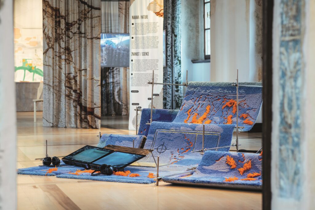 Contributors to the recent Future Legacies exhibition in Ljubljana and Schneeberg included Robertina Šebjanič, who investigates the hidden legacy of discarded chemical weapons in the sea by weaving together scientific research, storytelling and local crafts to call for ecological responsibility. Also, there were Cécile Feilchenfeldt, whose architectural knitwear reinterprets Saxony’s craft heritage for contemporary couture, and Kim Cordes, who extends the lifecycle of silk and wool through sustainable textile practices.