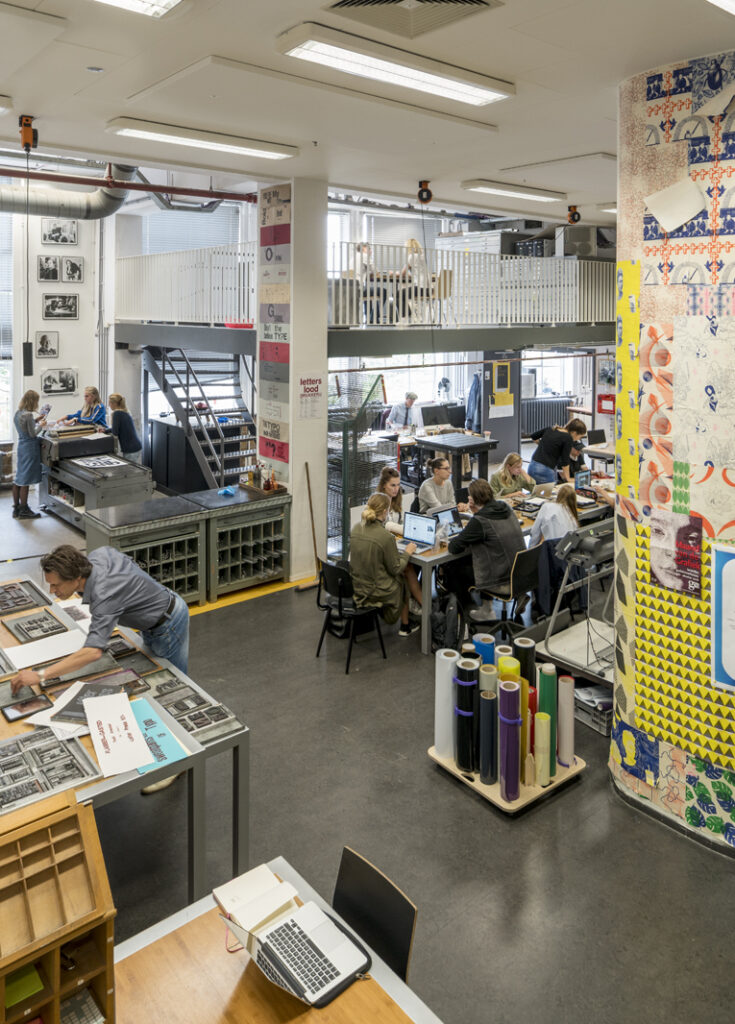 To give a concrete example: the publication station initially focused on print techniques like silkscreen, lithographs and letterpress. In the years after 2012, we introduced digital crafts, like the ability to use laser cutters, vinyl cutters and digital printing alongside the traditional technologies. We also have a new studio dedicated to digital publishing and e-publishing. This extends beyond digital publishing to include editorial design and digital typography. It’s interesting to reflect on this because we’ve changed so much in the past ten years. It all sounds logical now, but just a decade ago, we were behind in these areas, as were many art schools. We’ve now firmly established these digital technologies. Another example is the interaction station, which has been operating since 2014. Initially, nobody knew what the Interaction Station was about. Today almost every student and teacher collaborates with it. The team consist of nine instructors/teachers, each with their own expertise within the field, teaching a wide array of technologies including programming, electronics, augmented and virtual reality, real-time 3d, machine learning and AI.