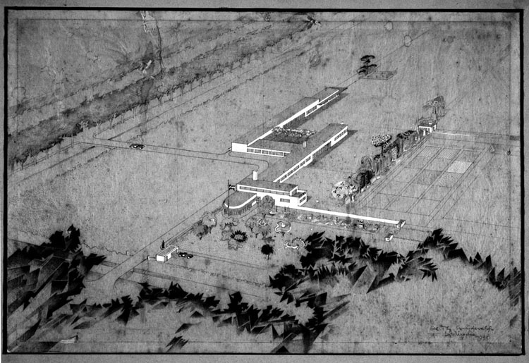 Even though Wijdeveld believed the Netherlands played a leading role in the international discourse, his concept found greater resonance abroad than at home. Frank Lloyd Wright seized on key elements for his Taliesin Fellowship, and Erich Mendelsohn was able to get Wijdeveld on-side for a realisation of his concept on the French Riviera. Ultimately, Wijdeveld realised a modest version of his original plan for a “Dutch Bauhaus” near Hilversum. At his working community which opened under the name Elckerlyc (Everyman) in 1937, Wijdeveld taught architecture, stage design and exhibition design to a small group of students. His institute was closed down by the National Socialists in 1941.