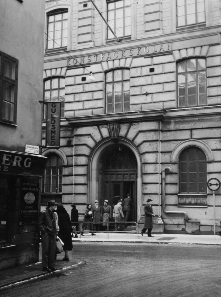 The curriculum, which was progressive in the historical context, with a clear orientation toward the British Arts and Crafts movement, came increasingly under fire from the turn of the century. The advocates of a modern design in the spirit of the ideals propagated by the Deutscher Werkbund (German Association of Craftsmen) believed that the teaching practiced at the Tekniska skolan, which focused on a history of styles and studies from nature, was no longer equal to the challenges of the industrial age. In reference to, among other things, the experiences of the Bauhaus, in the early 1930s they called for a fundamental reform of the school. The reform plans, which were put on hold during World War II, eventually resulted in 1945 in the school’s re-establishment as the Konstfackskolan, which offered two- or three-year education programs in various industrial design disciplines. The founding director Dag Melin and his successor from 1946, Åke Stavenow, implemented a curriculum that enlisted diverse materials (decorative painting, sculpture, ceramics, furniture, metalwork, advertising and book making).